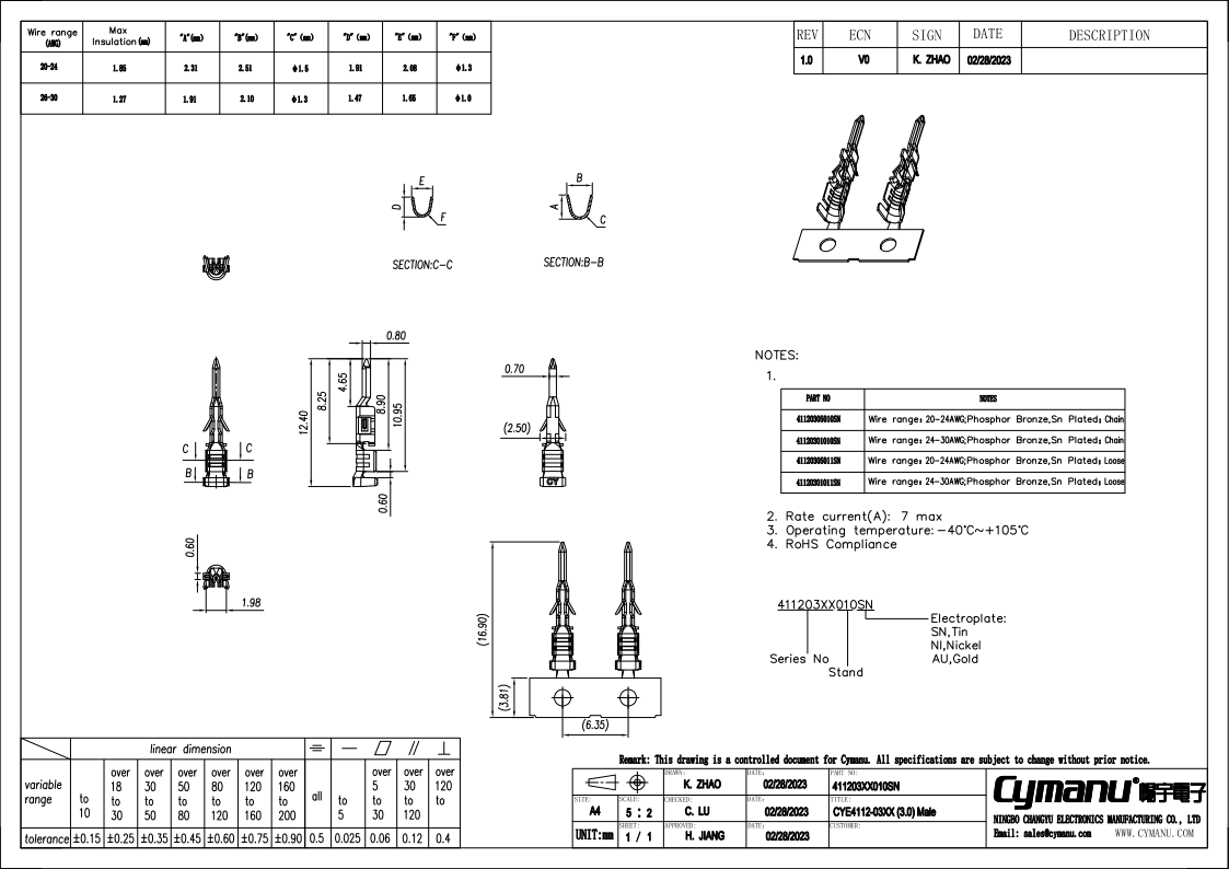 | Wire Size (mm²) | 0.05-0.14 | ||